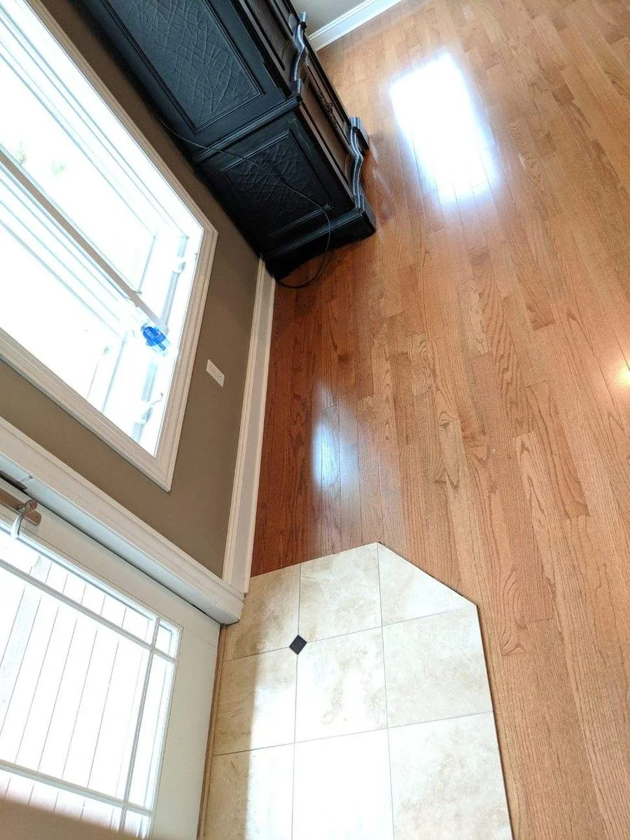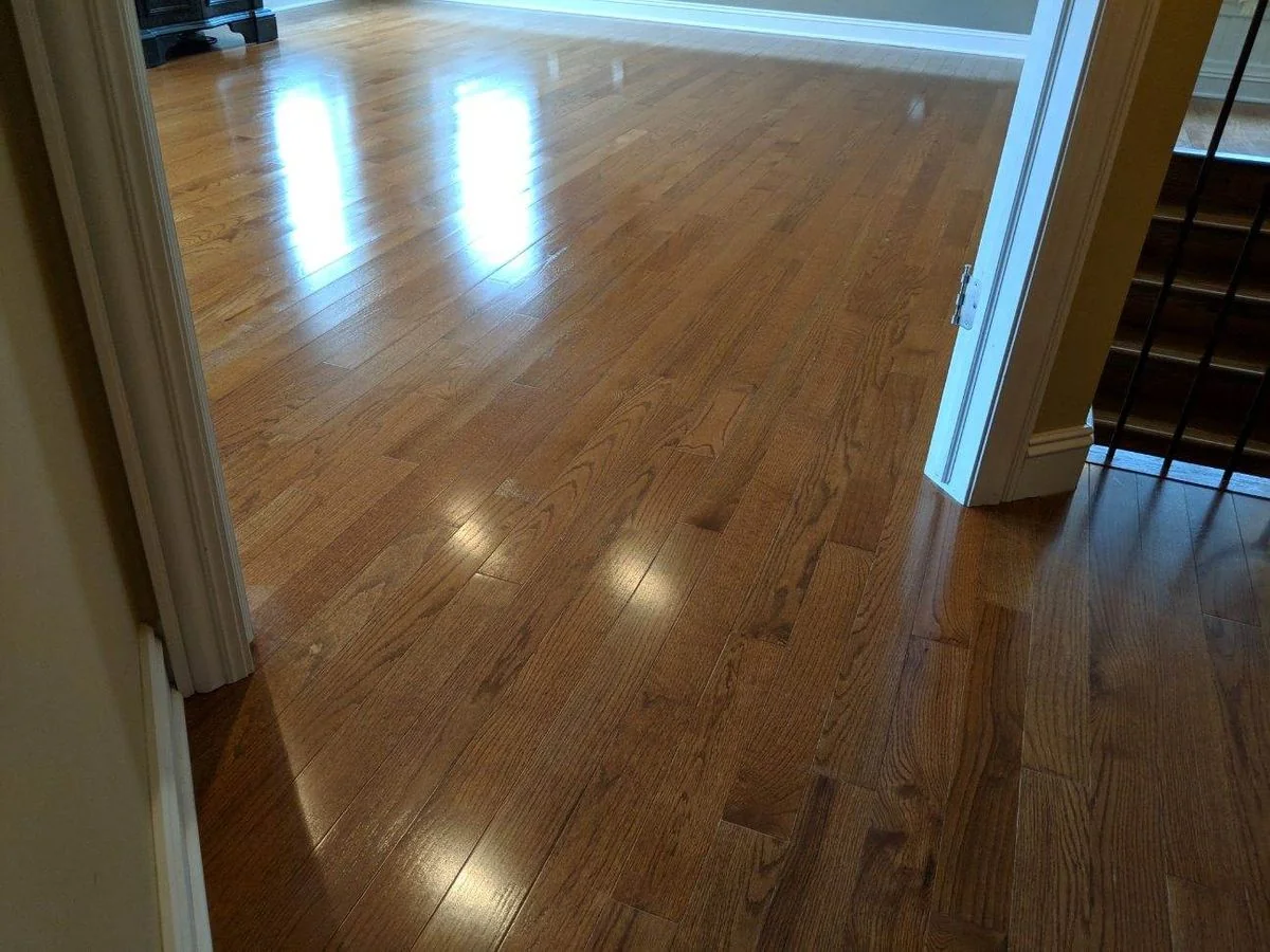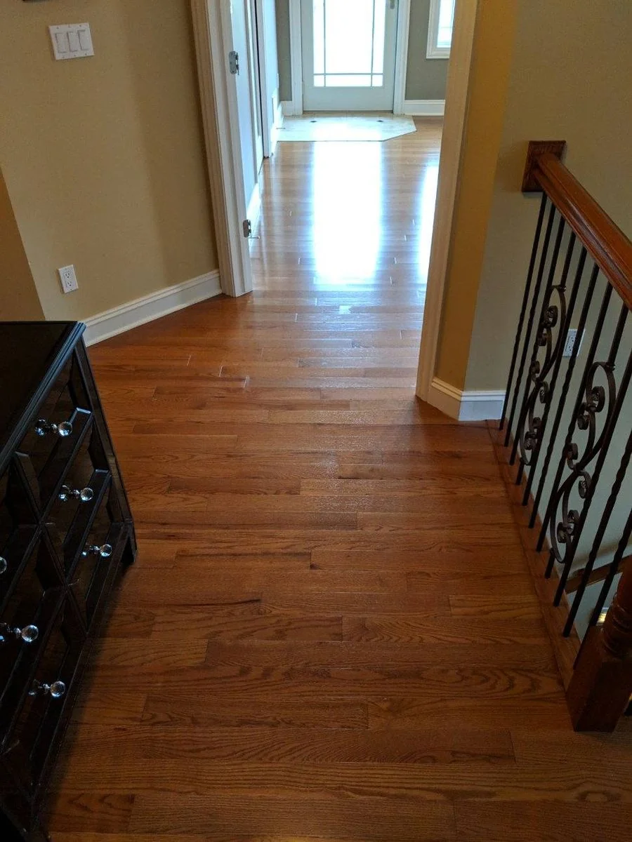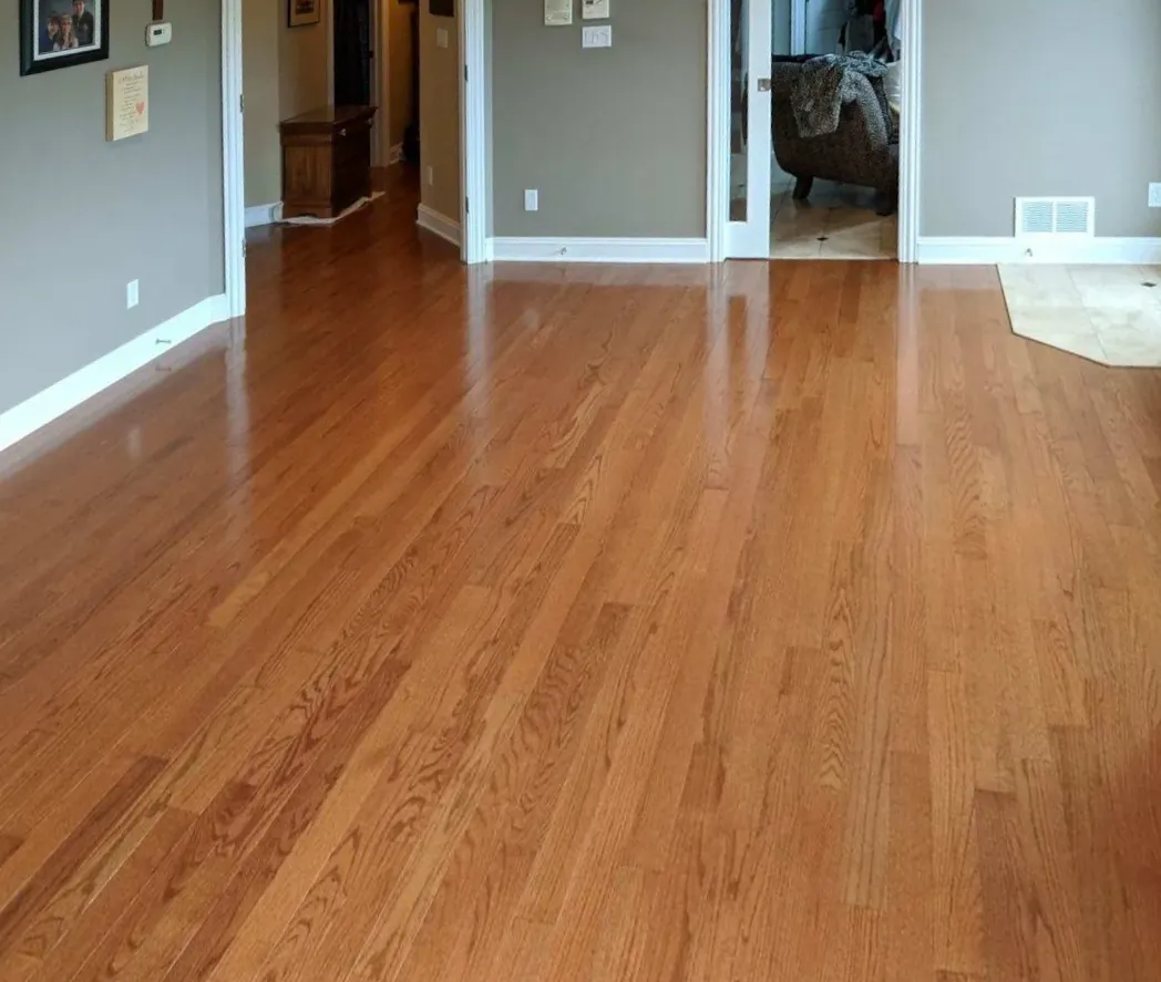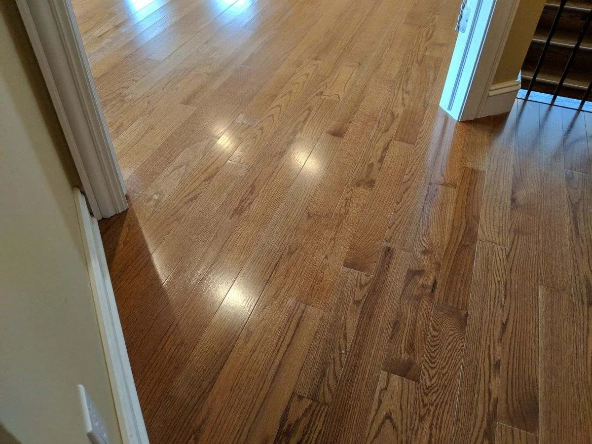 Prefinished hardwood, 3 1/4 inch solid, medium brown color, red oak specie